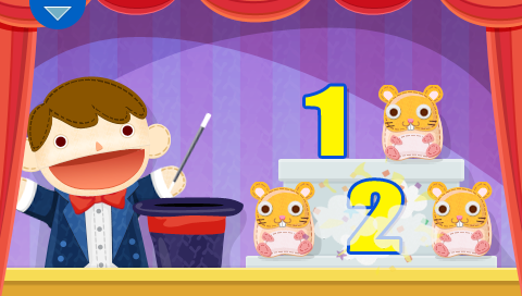 Game Descriptions: Time for the magic show! Watch as the magician makes his animal assistants appear and disappear. Help him count how many animals have magically appeared on stage.