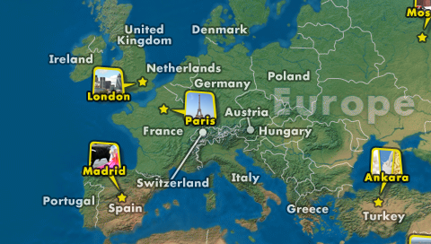 Did you know that with a running start, Chile's puma can jump horizontally over 40 12-inch rulers? Or, that Egypt was once ruled by a 9-year-old king? Explore the globe to learn more cool facts as well as geography, popular sports, customs, animals, landmarks, and languages from around the world. Happy traveling! Please note: Not every country is represented on this globe.