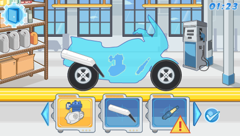 Salut petit mécano ! Prêt à mettre en pratique tes connaissances en mécanique ? Amuse-toi à remplir les missions données par ton chef d'équipe. Fabriquons des véhicules !
