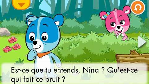 Apprends du vocabulaire nouveau, amuse-toi avec les animaux, écoute et chante de super chansons grâce au mode karaoké et découvre l'histoire intitulée « Mais quel est ce bruit ? » mettant en scène tes deux oursons préférés !