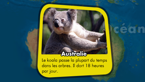 Savais-tu que le puma pouvait sauter jusqu'à 5 mètres de haut ? Ou que le plus petit oiseau au monde était à peine plus gros qu'un bourdon ? Ce globe te permettra de découvrir des tas d'informations sur plus d'une soixantaine de pays du monde, sur les sports et les cultures locales. Tu pourras également apprendre des mots dans 15 langues différentes !