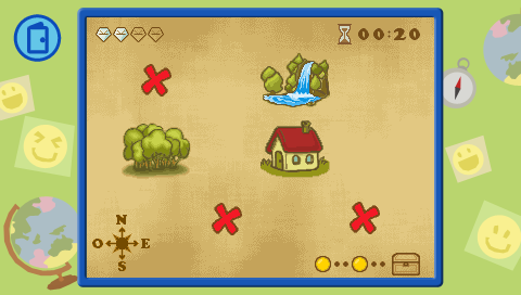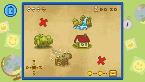 Aide le capitaine des pirates à trouver le trésor caché sur la carte. Touche le bon emplacement en t'aidant de la boussole et des indications.