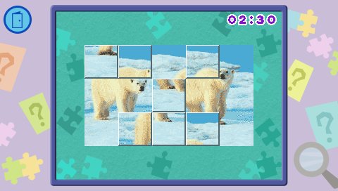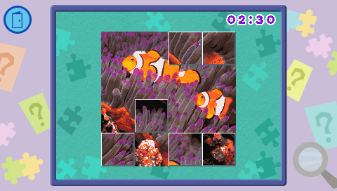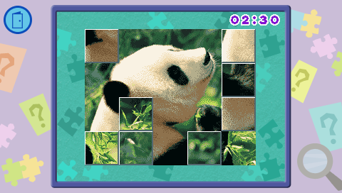 Oh non ! Toutes tes jolies photos sont sens dessus dessous ! Remets les pièces du puzzle dans le bon ordre pour les reconstituer. Touche deux pièces pour les intervertir.