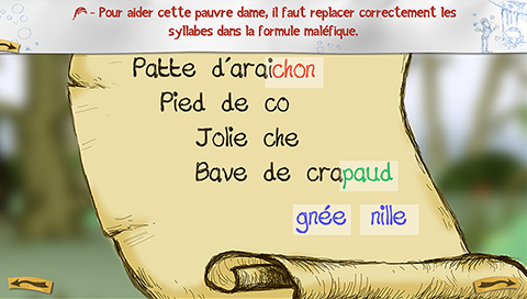- Trouver les bonnes syllabes de la formule magique de la reine Crapaudette
