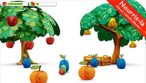 Jour après jour, ta chenille qui fait des trous devient de plus en plus grosse, jusqu'à ce qu'elle se transforme en un magnifique papillon. Un nouvel œuf apparaît alors et l'aventure recommence. C'est un superbe monde plein de couleurs dont tu ne te lasseras pas.