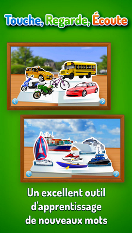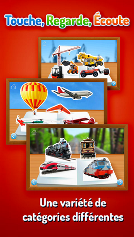 De drôles d'engins ! présente plus de 55 véhicules du monde entier. C'est aussi l'application idéale à partager entre parents et tout-petits, combinant de superbes photographies à des mots simples et une narration amicale. Vous pouvez également transformer cette application en outil d'apprentissage linguistique pour les enfants de tous âges en choisissant une deuxième langue dans le menu.
