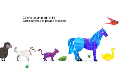 Accompagne l'adorable ours brun à mesure qu'il explore son monde et se fait de nouveaux amis. Rencontre l'oiseau rouge, le canard jaune, la grenouille verte et d'autres personnages. Colorie les animaux et amuse-toi à créer tes propres sons et musiques uniques. Les enfants adoreront enregistrer leur voix en chantant et à pousser leurs propres cris d'animaux.