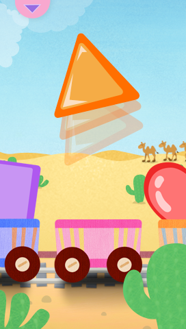 Sing along as the train chugg, chugg, chuggs shapes through the colorful scenery. Touch the shapes to learn their names.