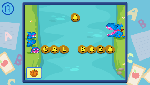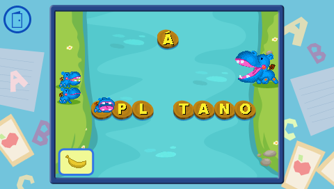 Ayuda a los pequeños hipopótamos a cruzar el río. Arregla el puente buscando la letra que falta en cada palabra.