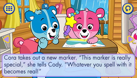 It's a fun-filled day at the cubhouse as Cody and Cora learn to write and play. Help them prepare letter cards for their games and activities. Then join Cody and Cora on an adventure with a special marker that makes words come to life!