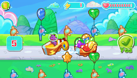 Game Descriptions: It's the anniversary of the Super Team landing on Planet Z! The Polygons want to set up a celebration party. Help the Polygons decorate the party with the correct number of balloons and seats, then count how many Polygons are joining the anniversary feast. You will have a lot of counting fun with the Super Team.