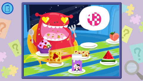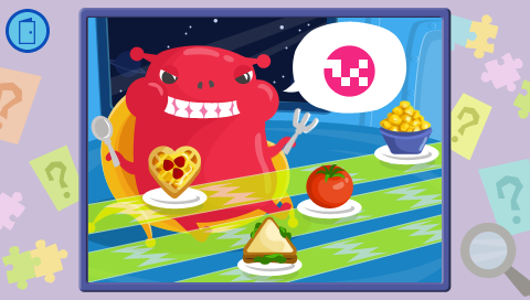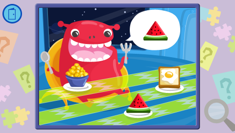 Munchy the Monster is hungry! Help feed him by touching the foods that are the same shapes he's thinking of.