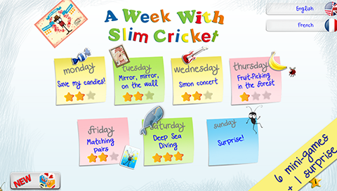 "A Week With Slim Cricket", A series of original mini-games for children!